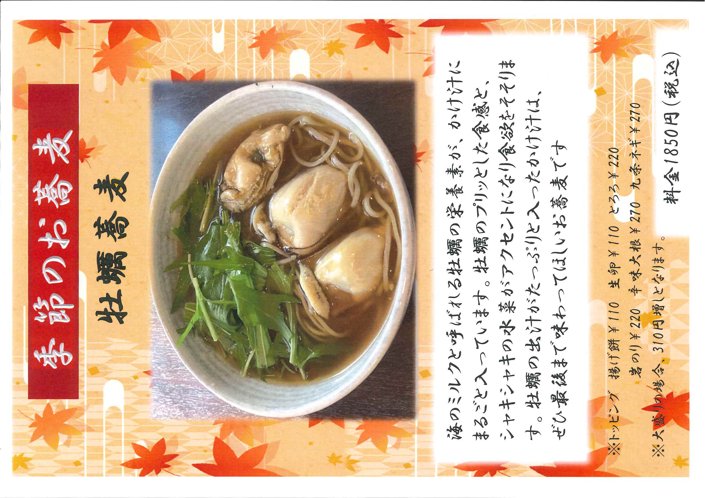 - 11月の季節のお蕎麦は「牡蠣蕎麦」をご提供致します。